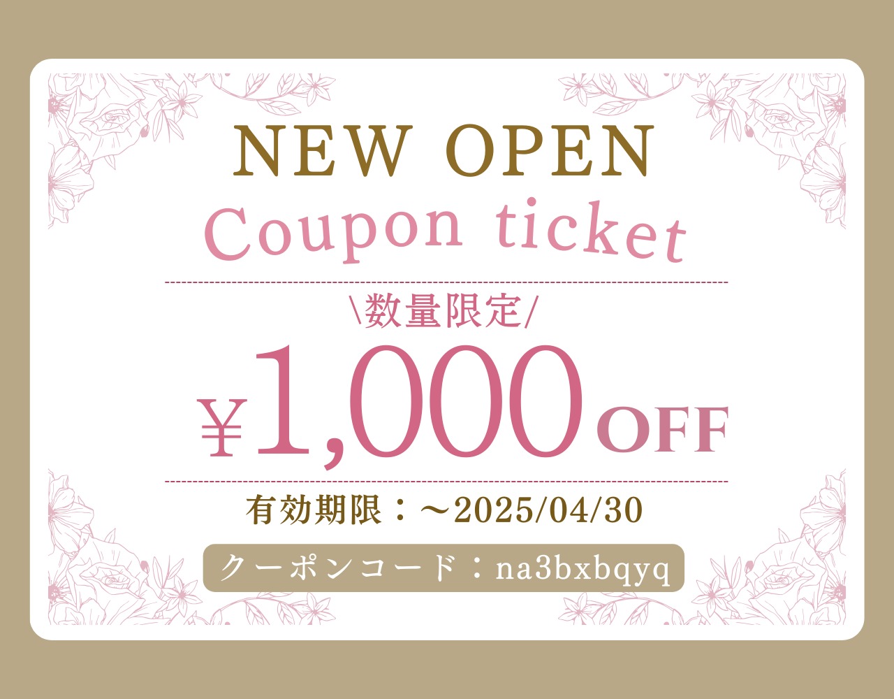 ショップURL:https://aliy.kawaiishop.jpの、ショップで商品で購入の際に、上記のクーポンコードがご利用可能です。